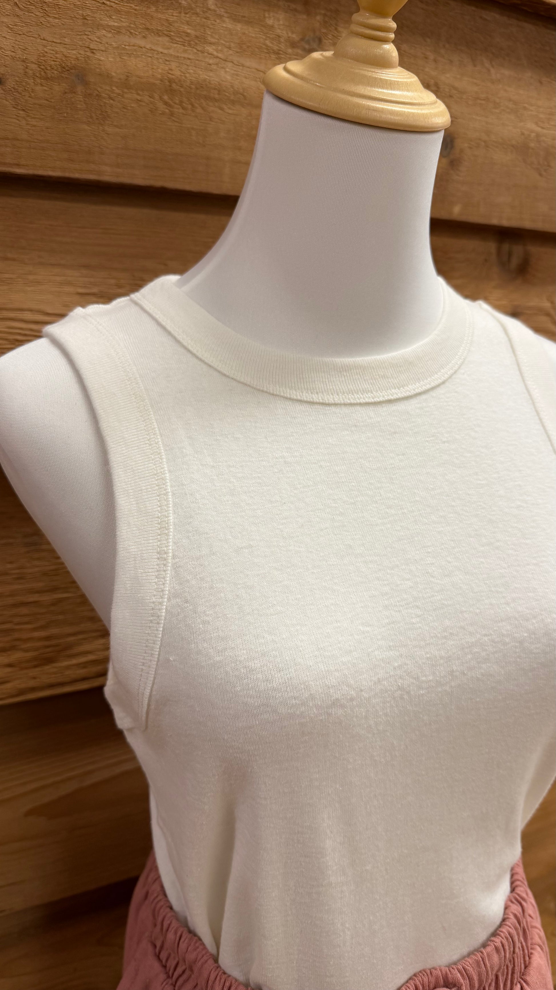 Soft, breathable and beautifully cut, this hemp and cotton blend singlet is made for everyday movement and warm-weather ease. The delicate neckline and arm detail add a refined touch, while the gentle stretch ensures comfort that follows you, not the other way around.
